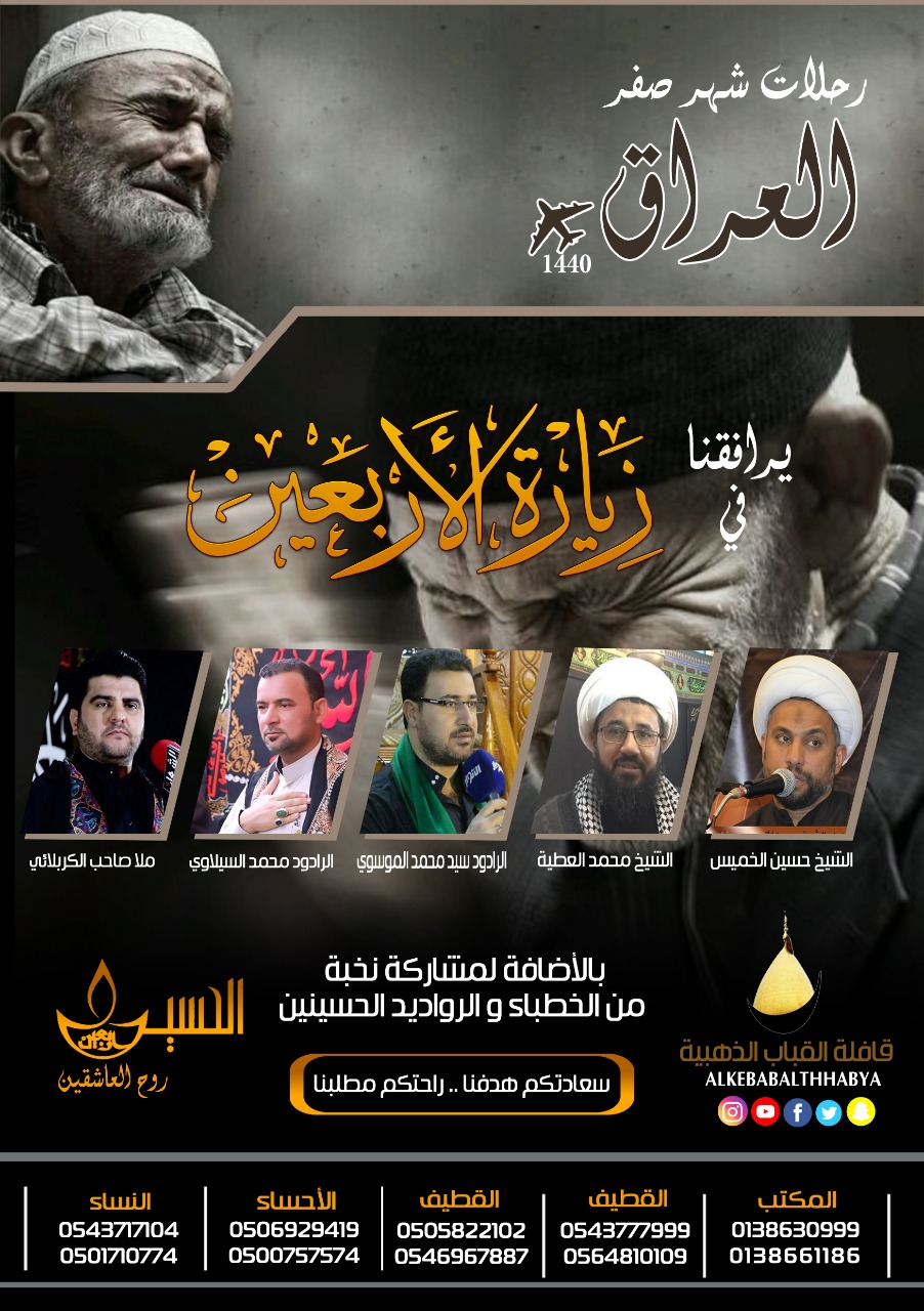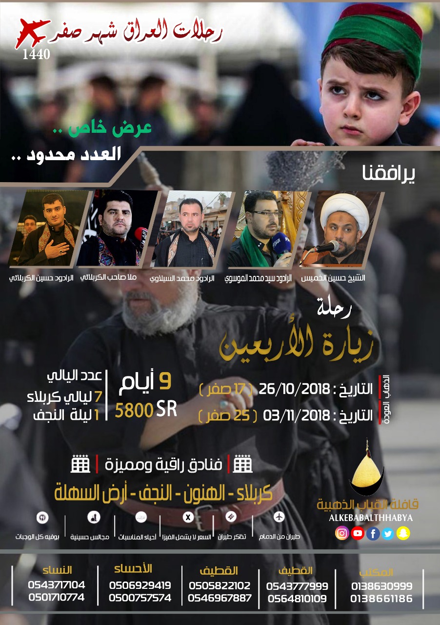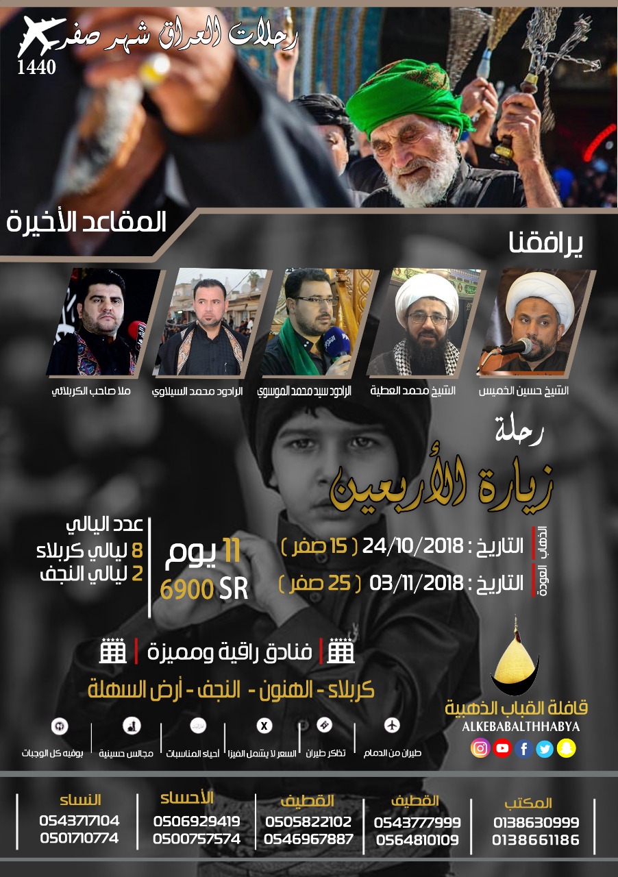 تعلن #b80000 ;">قافلة القباب الذهبية عن استمرار التسجيل لرحلة زيارة الاربعين ووفاة النبي ﷺ 1440