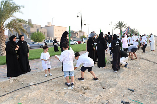 تفاعل عدد من المتطوعين والمتطوعات في مدينة صفوى مع المبادرة البيئية التوعوية «نزرعها لننعم بها» التي نظمها فريق بصمة خير التطوعي، اليوم، بأشراف بلدية صفوى في ممشى جاوان.