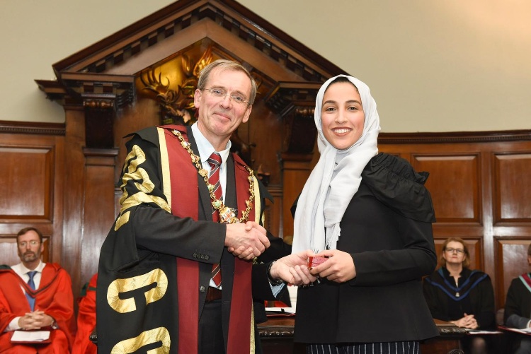 وذكرت ان جائزة علم التشريح في الكلية الملكية للجراحين في إيرلندا، تحصر للمنافسة لافضل خمس طلاب في الامتحانات العملية لمادة التشريح في السنة الاولى للطب، لافتة الى ان ادارة الجامعة تقوم باستدعاء الطلبة الخمسة لخوض امتحان تشريح في فترة الامتحانات النهائية ومن بعد هذه التصفية يحصل الفائز على ميدالية ايفات والمركز الاول.