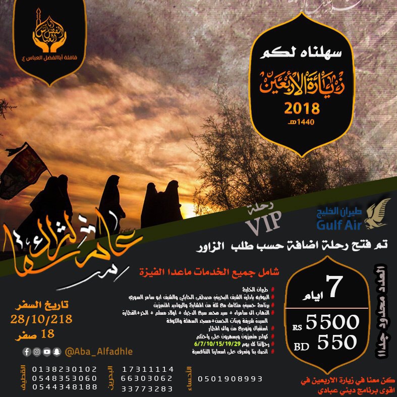خصم خيالي على المقاعد الأخيرة لزيارة الأربعين مع قافلة أبا الفضل العباس (ع)
