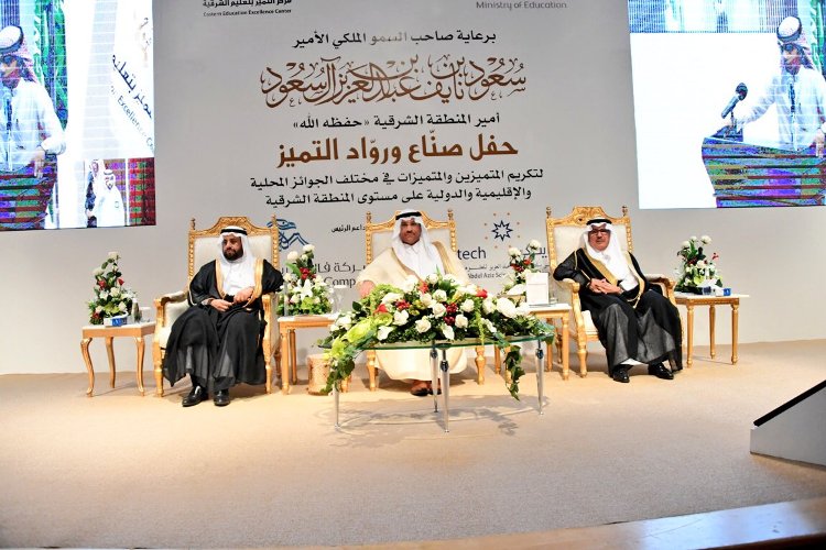 وشمل الحفل الذي نظمته الإدارة العامة للتعليم بالمنطقة الشرقية، تكريم أربعة وتسعين من صناع ورواد التميز التعليمي بالمنطقة الشرقية، ممن حققوامراكز تفوق في أربع عشرة جائزة أو مسابقة محلية أو إقليمية أو عالمية.