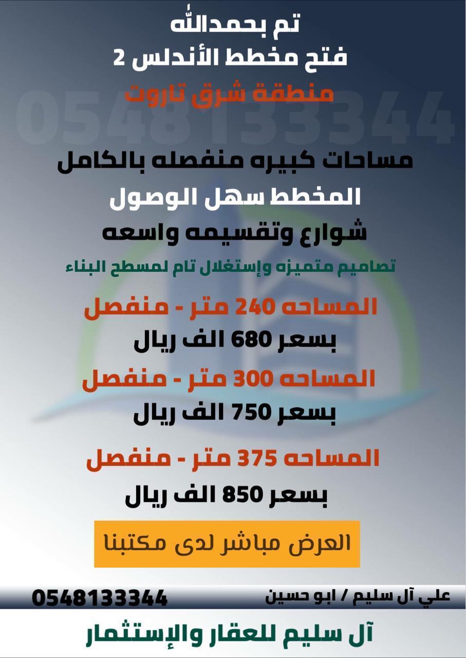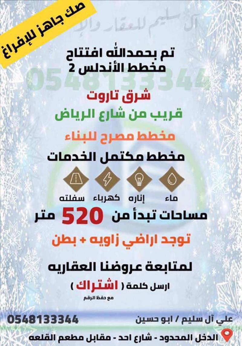 أفضل العروض لتملك بيتك في مخطط الأندلس 2 بتاروت مع مكتب آل سليم العقاري