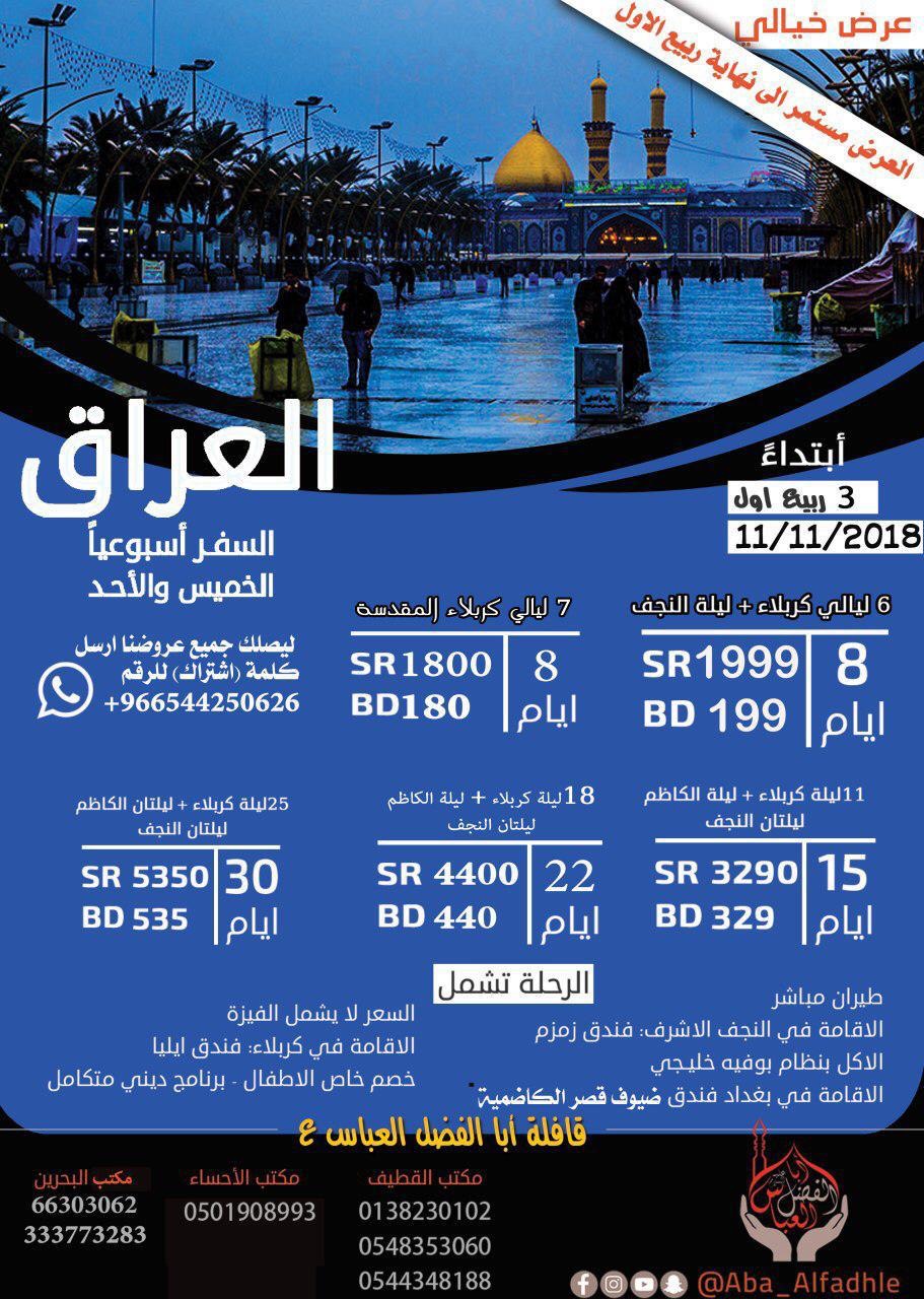 خصم خيالي لزيارة العراق مع ”قافلة أبا الفضل العباس (ع)“