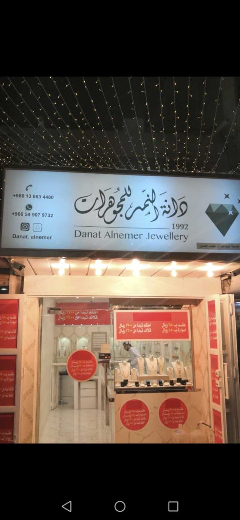 هذا العرض حصري ولدينا فقط وليس لنا فروع اخرى سوى فرع القطيف سوق مياس اسم محلنا دانة النمر للمجوهرات هذا اللوكيشن للمحل 👇