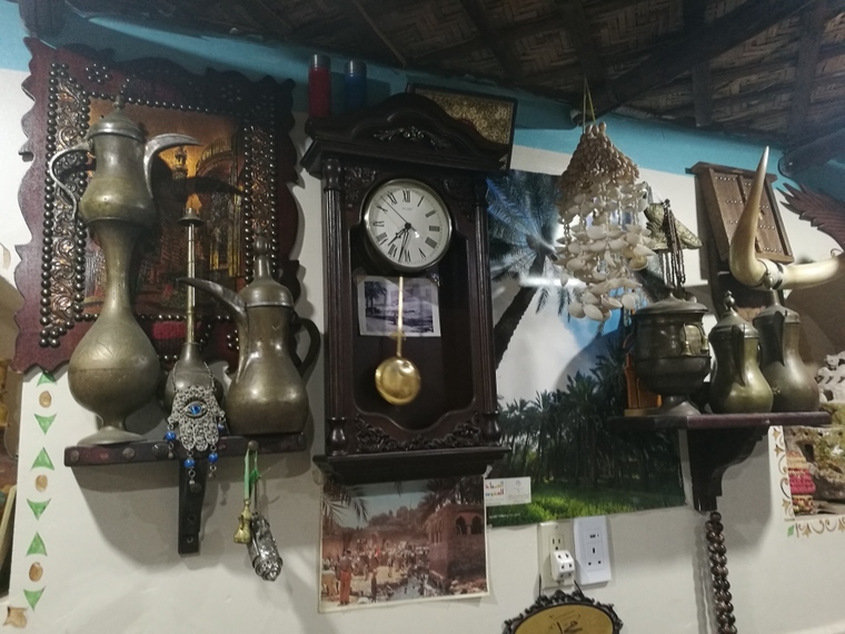 وذكر الشاب بأن مجلسه التابع لمنزله يحوي العديد من القطع النادرة منها «دلات وأواني معدنية متعددة الأحجام والأشكال، علب لمشروبات قديمة، كريمات وعطورات وكلونيا، وجرات مختلفة وأدوات حلاقة وقناني بعضها يصل عمرها إلى 150 عام، إضافة إلى صور عائلية قديمة زينت الجدران، وبعض المنحوتات التي عكف على صنعها مع أخيه عباس، وغيرها الكثير من الأدوات الأثرية القديمة».