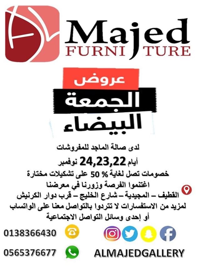 عروض الجمعة البيضاء لدى صالة الماجد للمفروشات