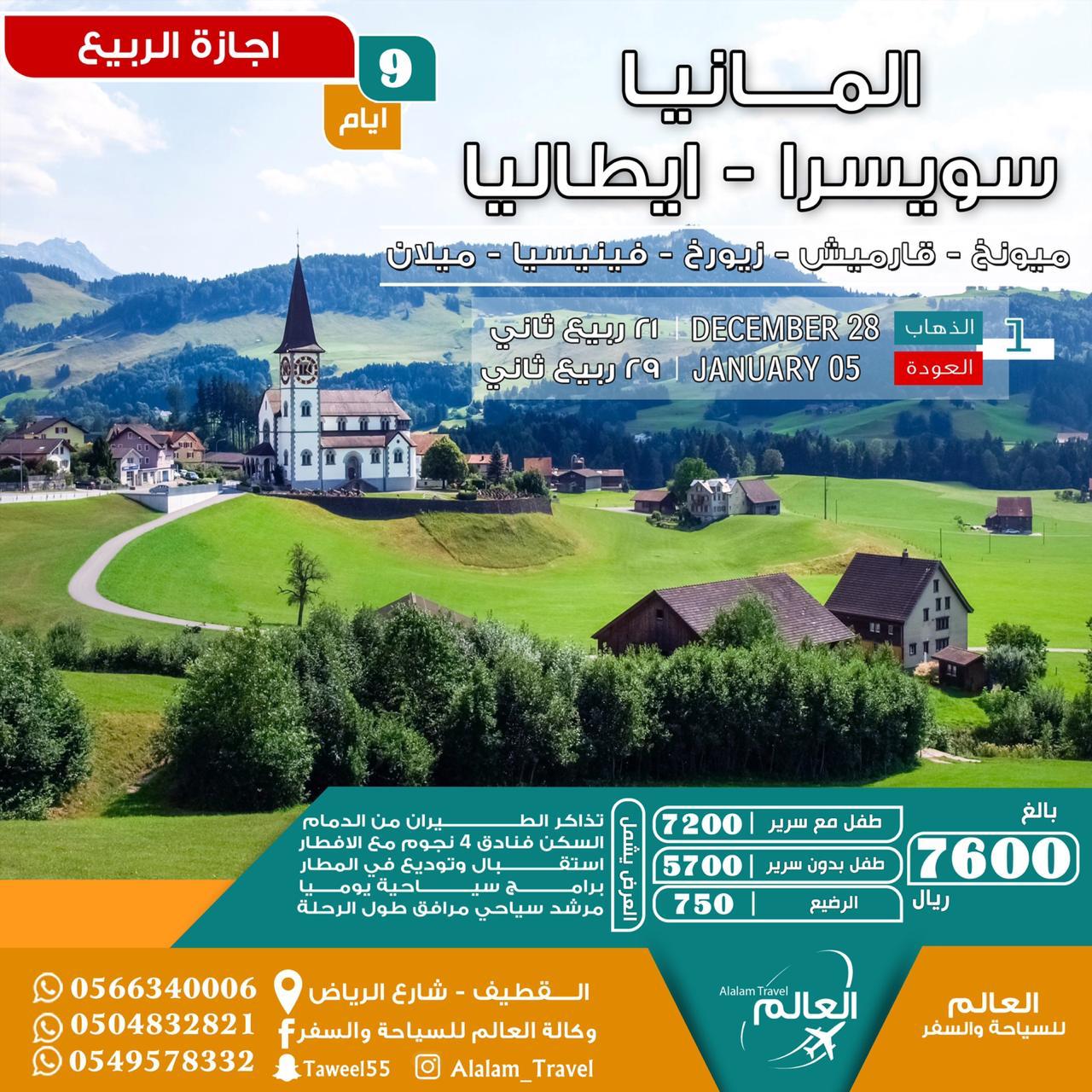 المانيا سويسرا ايطاليا 9 ايام 7600 ريال 🇩🇪