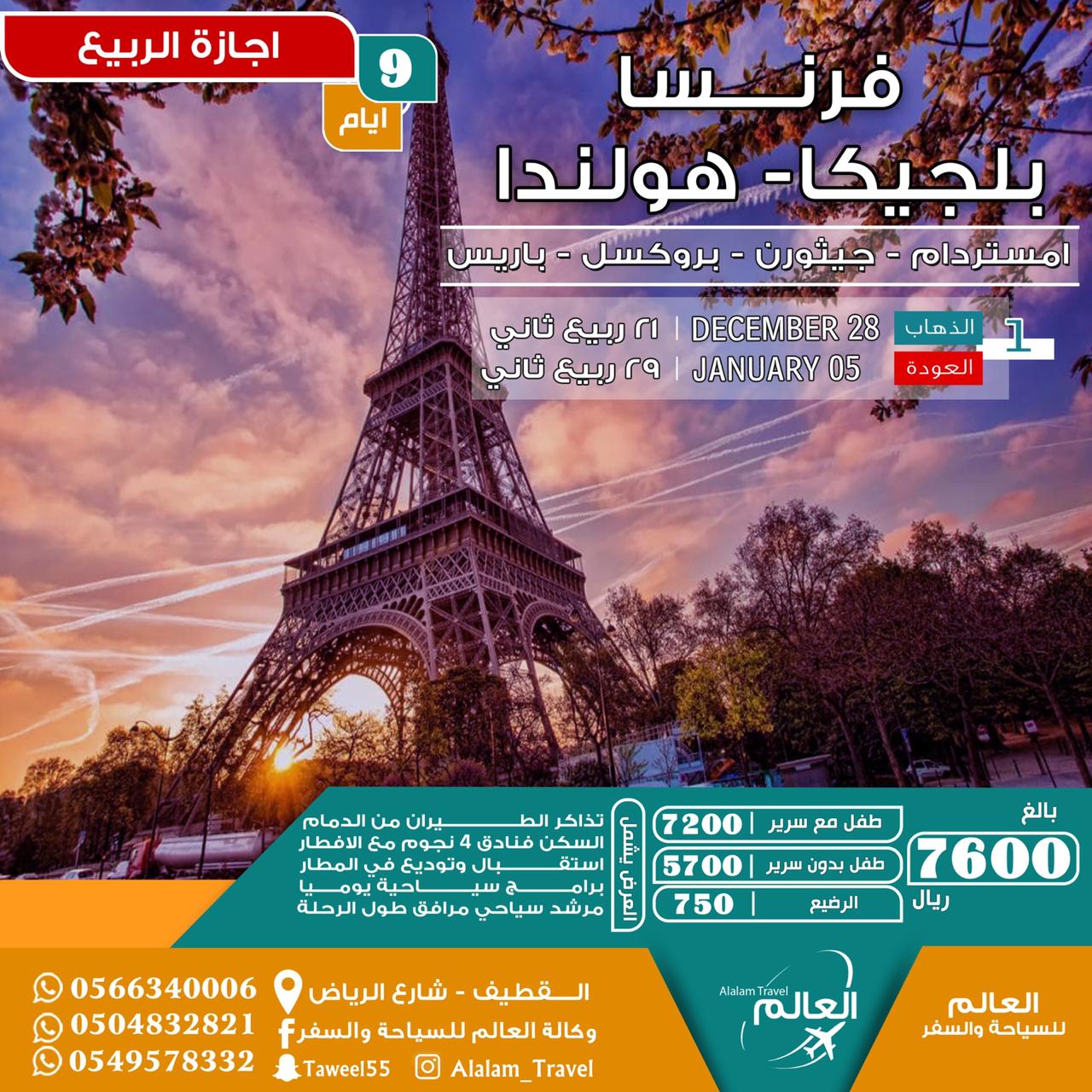 فرنسا بلجيكا هولندا 9 ايام 7600 ريال 🇫🇷