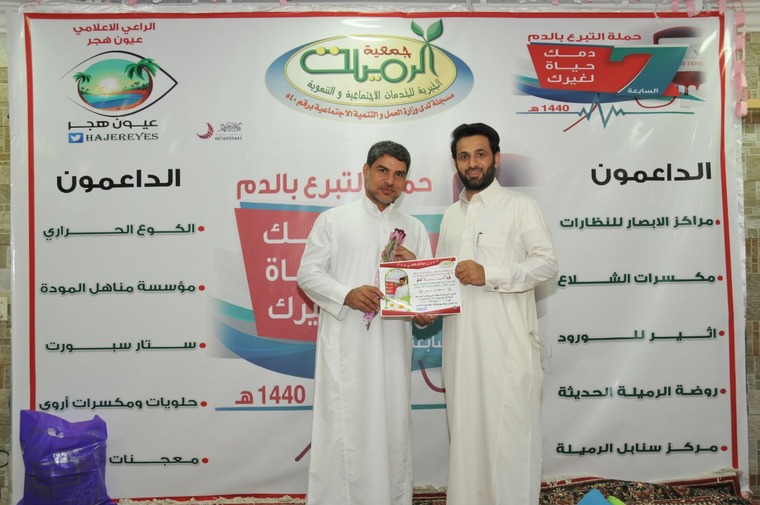 دشن الشاعر والأديب السيد هاشم الشخص وبحضور مجلس إدارة جمعية الرميلة ولفيف من الوجهاء والإعلاميين والصحفيين حملة التبرع بالدم السابعة بجمعية الرميلة الخيرية التي حملت شعار «دمك حياة لغيرك»، وذلك مساء يوم أمس الخميس.