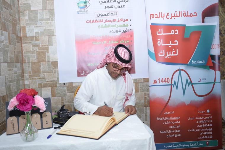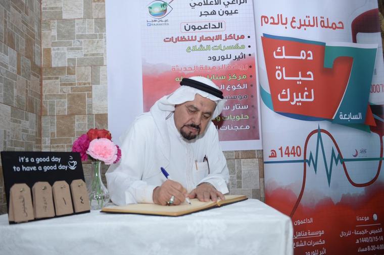 وقال بأن هذه الحملة تأتي للمساهمة في إحتياجات بنوك الدم في مستشفيات محافظة الأحساء وهي كدور إنساني وتوعوي تجاه المرضى والمستفيدين
