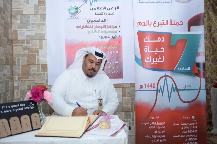ولفت بأن من هذه الأنشطة المشاركة في دعم بنوك الدم في محافظة الأحساء بتبني حملة التبرع بالدم سنويا بإشراف مديرية الشؤون الصحية والتي تمثل هذه الحملة لهذه السنة الحملة السابعة لمدة ثلاثة أيام.
