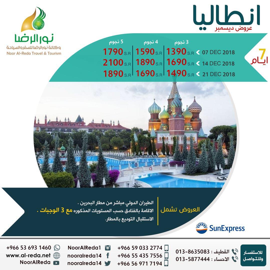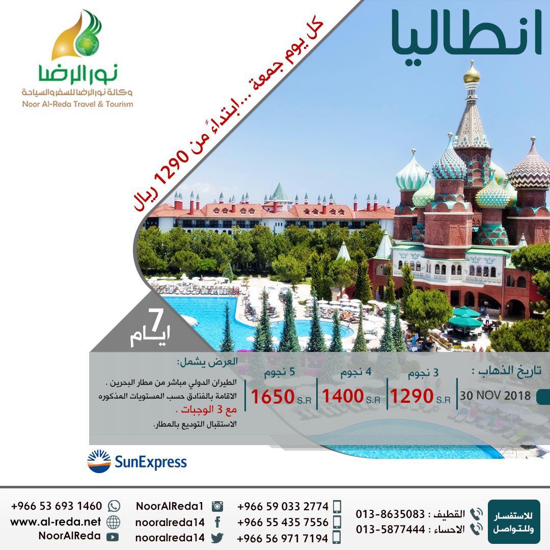 مع نور الرضا أقوى العروض إلى تركيا 1290 ريال انطاليا أو طرابزون