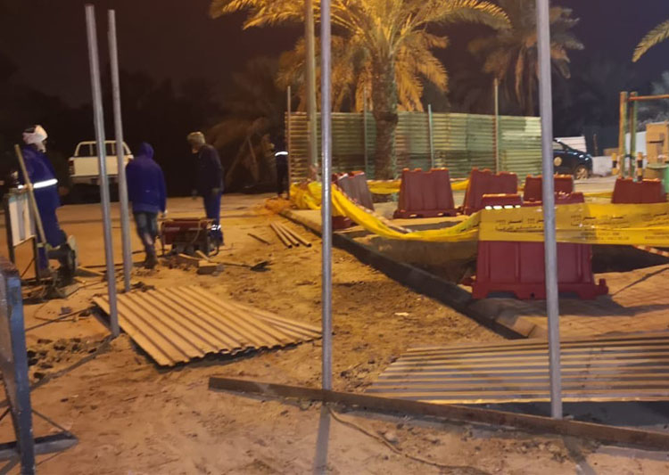 وقامت البلدية بتأمين الموقع بوسائل السلامة الاحتياطية، وذلك للوقوف على الحالة وإجراء الاستكشاف الفني، حيث تبين أنه هبوط أرضي «طوله العمقي 5 أمتار وعرضه 5 أمتار»، وتم إبلاغ الجهات المختصة، لاتخاذ اللازم وعمل الاحتياطات الإجرائية.