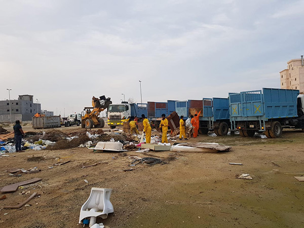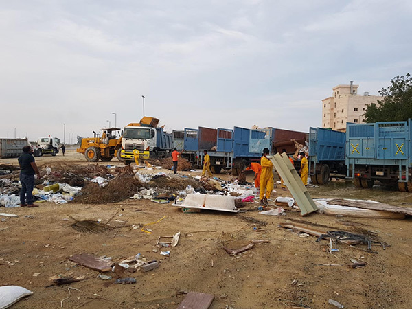 وشاركت البلدية بعدد من المعدات في الحملة تضمنت ”4 قلاب، شيول، سكسر رول اف“، مشيرة الى ان العمل مستمر بالحملة حال وجود مخلفات، بالاضافة الى القيام باعمال مكافحة الحشرات في المناطق التي تم تطهيرها.