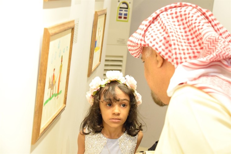 وأثنى على العناية والرعاية من والدتها الفنانة الهلال، وعدم تدخلها المباشر في رسوم ابنتها، لافتا إلى أن الطفلة ”محظوظة“ بوجودها في تلك البيئة، وبجوار المرسم الذي يتم فيه تداول الرسم".