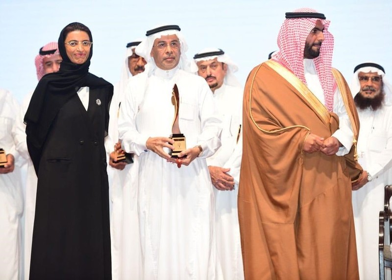وفي حفل التكريم مساء السبت الذي اقيم على مسرح قصر الثقافة بالرياض سلم الدروع المخصصة حضوريا سعادة وزير الثقافة سمو الأمير بدر بن عبدالله بن فرحان آل سعود وبمعيته نورة الكعبي وزيرة الثقافة وتنمية المعرفة الاماراتية.