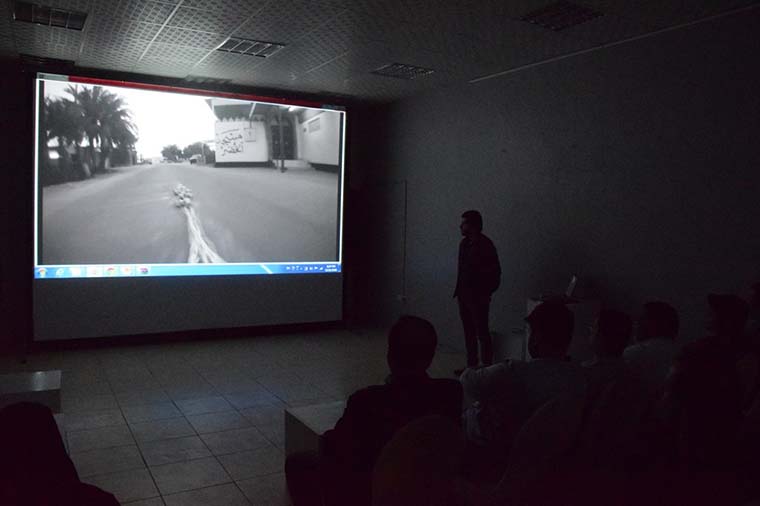وبالحديث عن مشاركته في ”الملتقى“ أوضح أنه أول فيديو له حيث يعتبر تجربة وانطلاقة في نفس الوقت تحت مسمى ”فوضى مجردة“ الذى عبر فيه عن ”الفوضى“ من خلال لعبة قديمة وهي ربط العلب الفارغة بحبل في ”دراجة“ والتجول بها في طرقات الحي.