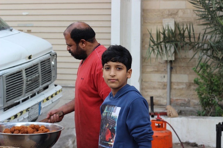 هنا تحدثت معه قليلاَ وسألته كيف امتهن الصنعة اجابني بانه وصل لمرحلة دراسية معينة ثم اجبرته ظروف الحياة ان ينقطع عن الدراسة ليواصل طريق الحرفة والعمل بالكسب الحلال ليعيل أسرة وحيث أخذ من أخيه وابن أخيه عوناَ لينجز العمل بشكل أسرع قبل ان أمشي لأكمل مسيرتي ضيفني بقطع من الفلافل اللذيذة بطعم لا ينسى.