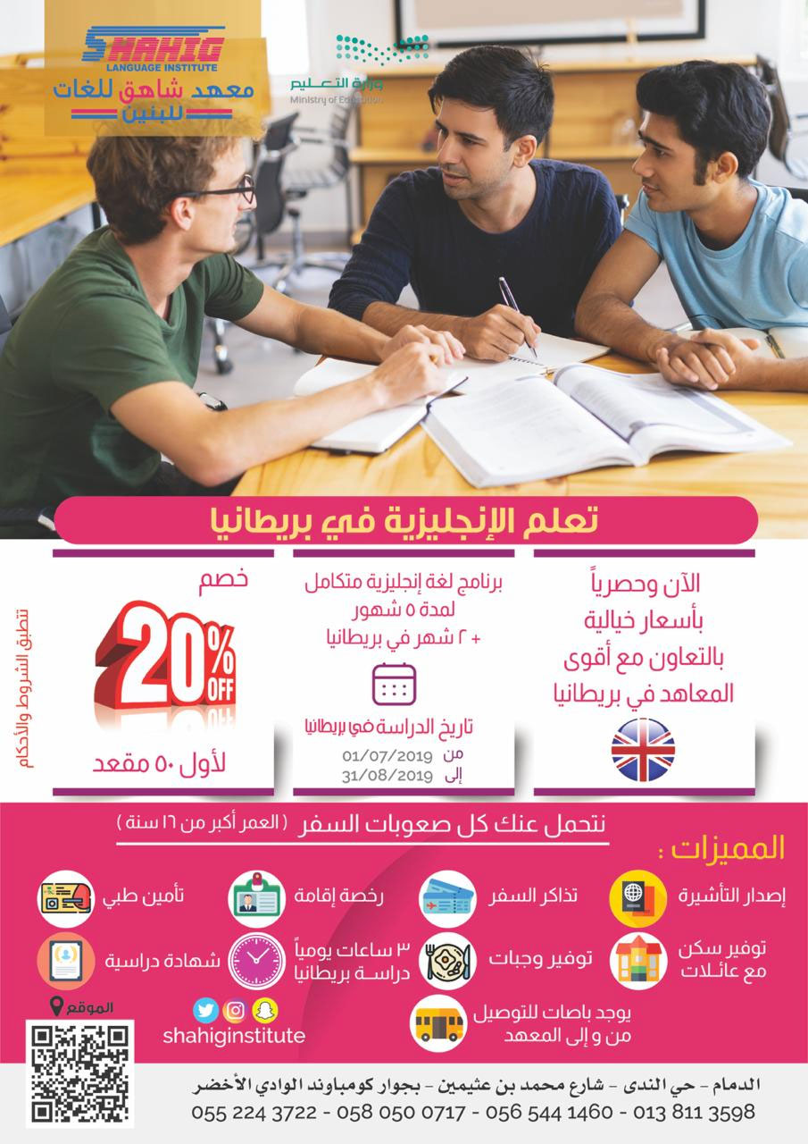 📚برنامج 5 أشهر في معهد شاهق للغات + شهرين في بريطانيا