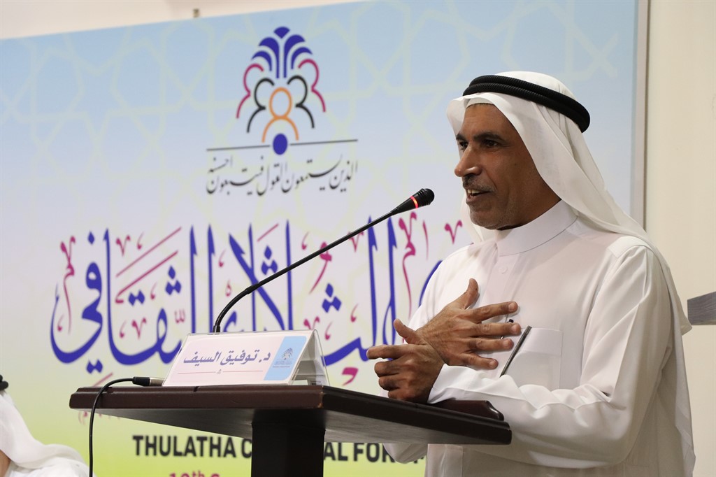 وفي الأمسية التي حل فيها الدكتور توفيق ال سيف ضيف شرف، شدد الدكتور مدن على دعوته لمصطلح ”الثقافة في الخليج العربي“ بدلا عن ”الثقافة الخليجية“ موضحا بأنه لا يمكن الحديث عن ثقافة في هذه المنطقة مسقطة عن بيئتها العربية وأفقها العربي.