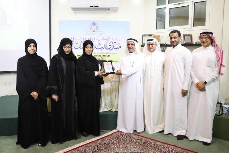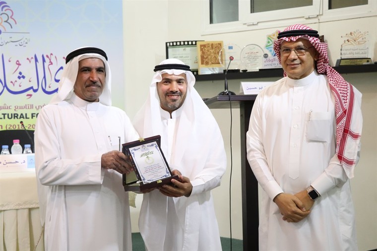 وكرم الدكتور توفيق السيف والمهندس الشايب الفنان التشكيلي أبو حسين على إنجازاته وأعماله القيمة بدرع شكر وتقدير.