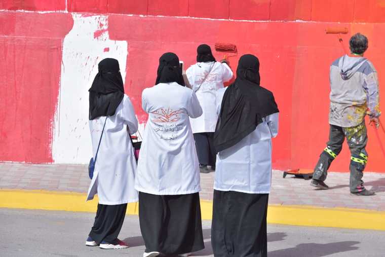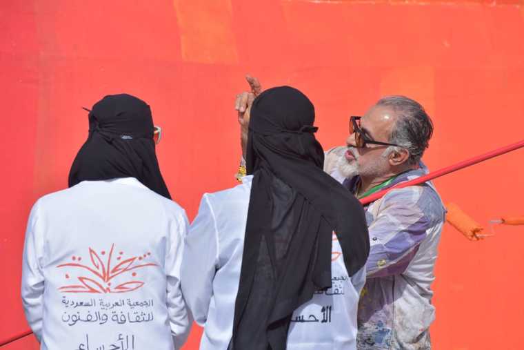 وأوضحت مشرفة الفنون التشكيلية بجمعية الثقافة والفنون بالأحساء لا سلمى الشيخ بأن هذا العمل الفني التطوعي بإشراف جمعية الثقافة والفنون بالأحساء ويشارك فيه أكثر من 50 فنان وفنانة من الفنانين التشكيليين الأحسائيين.