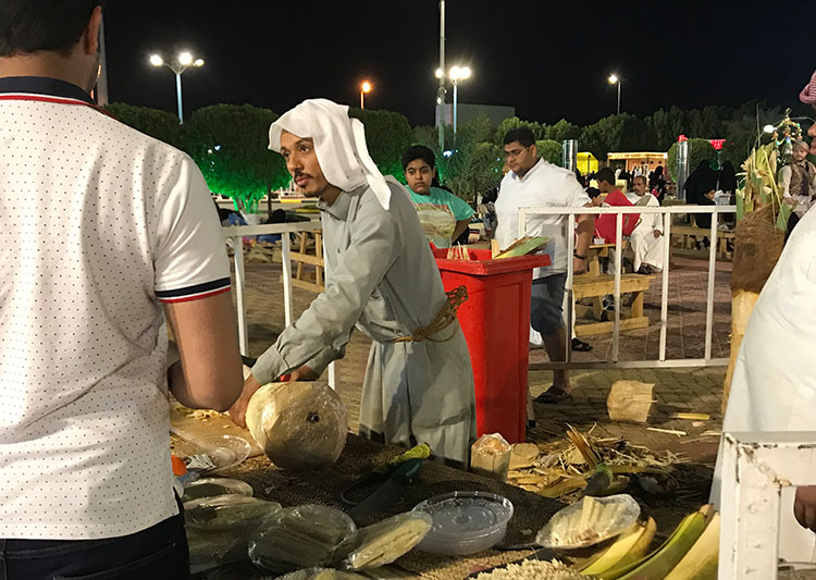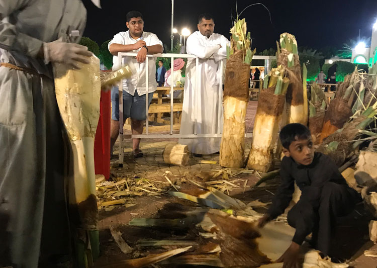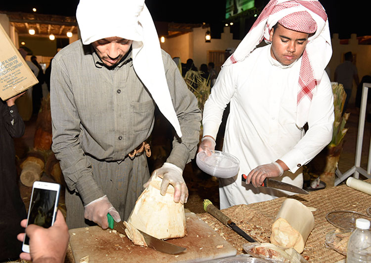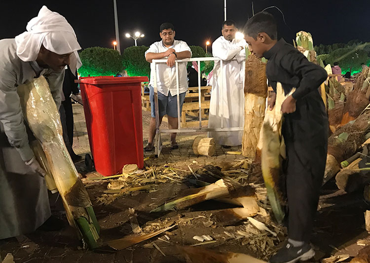 جذب ركن «قلب النخلة» الذي يشرف عليه الشاب الأحسائي نايف العريفي، جميع الفئات من زوار مهرجان تسويق التمور الذي تنظمه أمانة الأحساء على مدى 30 يوما في مدينة الهفوف.