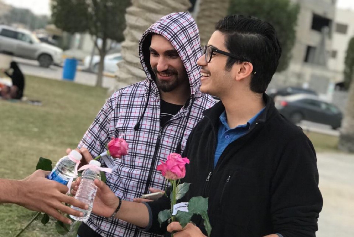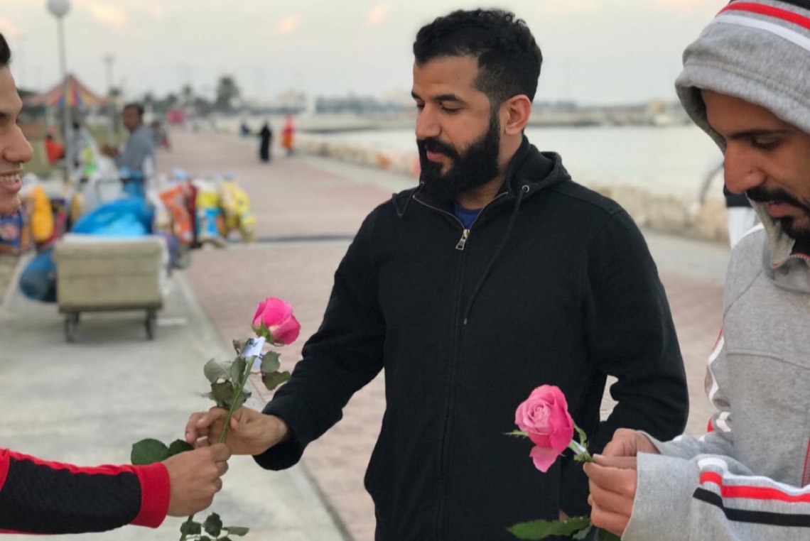 احتفل متطوعون في محافظة القطيف، بيوم المحبة، وذلك بتوزيع الورد، وبطاقات صغيرة تحمل عبارات عن المحبة والسلام، على مرتادي الواجهة البحرية في القطيف.