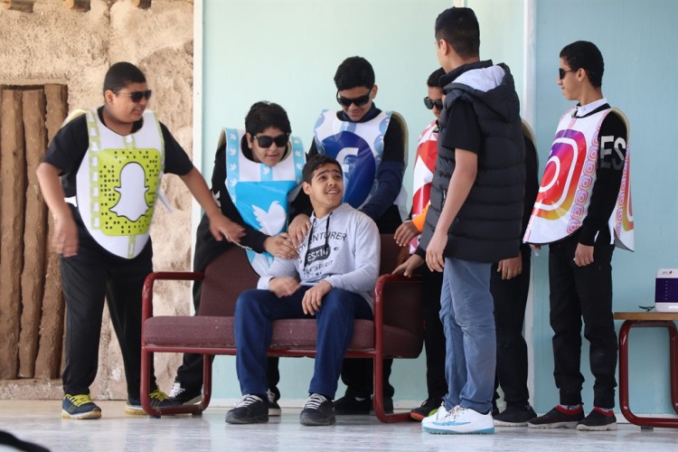 واستهل المهرجان بآيات من القرآن الكريم، تلاها الطالب موسى السادة، ثم قدم الطالب خليل الصادق فقرة المشهد المسرحي «وسائل التواصل الاجتماعي» من إخراج المعلم علي القلاف.