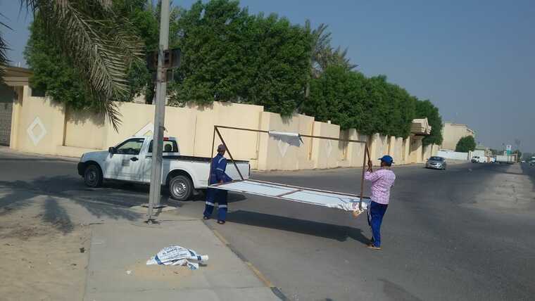ولفت الى قيام الفرق بمعالجة مختلف عناصر التلوث البصري، والمتمثلة في إزالة 600م2 من مخلفات البناء والأنقاض مجهولة المصدر وعدد «20» من اللوحات الدعائية المخالفة والكتابات والملصقات المشوهة للمظهر العام، وكذلك غسيل الأرصفة بطول 720م، واستبدال 50 برميل للنظافة، ومسح الشوارع، وكنس الساحات.