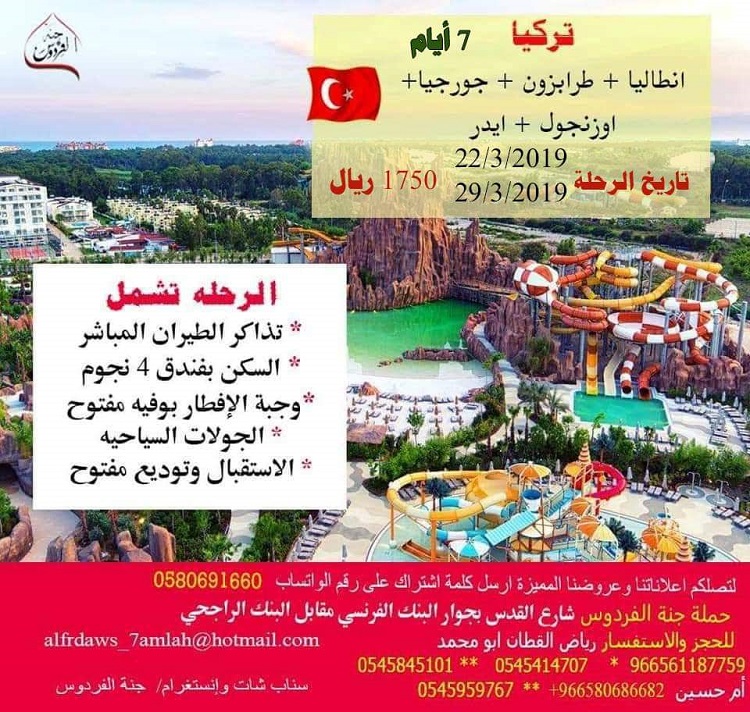 #cc0033 ;">حملة جنة الفردوس تعلن عن رحلاتها لمكة و المدينة و القراق و تركيا و الأحساء