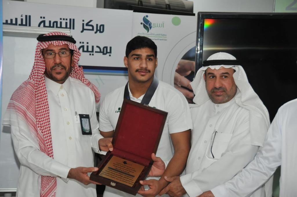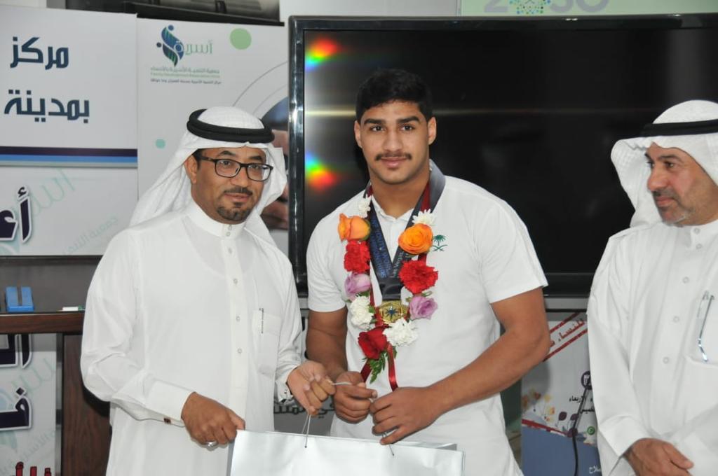 بالصور.. العمران تحتفي ببطل العالم في رفع الأثقال وتكرم أسرته