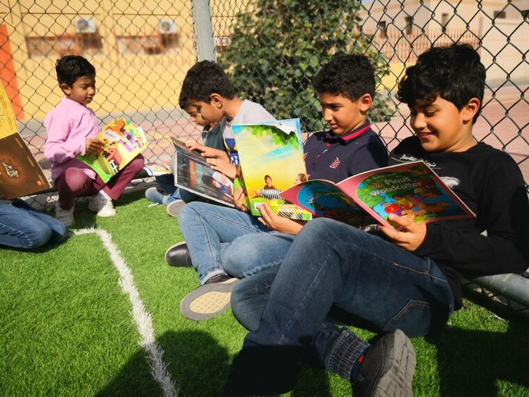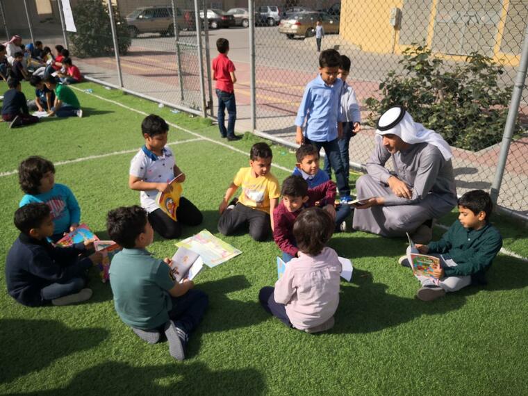 طلاب ومعلمون يشاركون في «ساعة قراءة» بابتدائية ذات الصواري