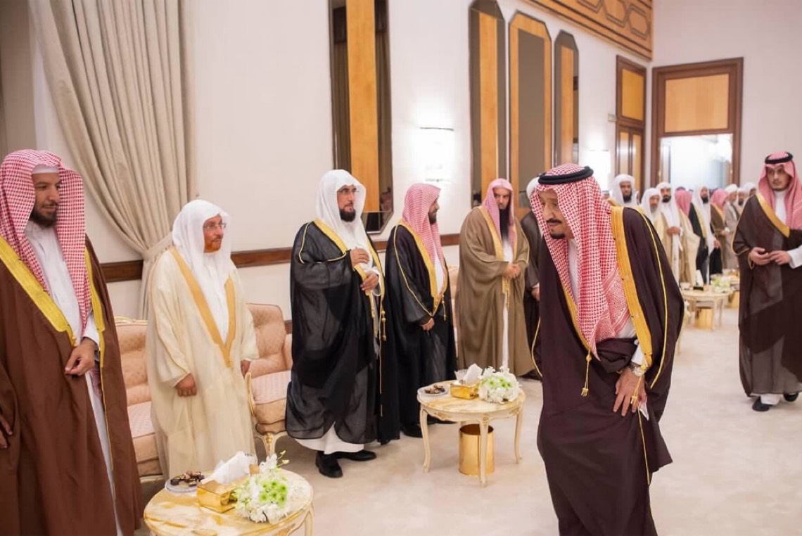 ثم تشرف الجميع بالسلام على خادم الحرمين الشريفين.