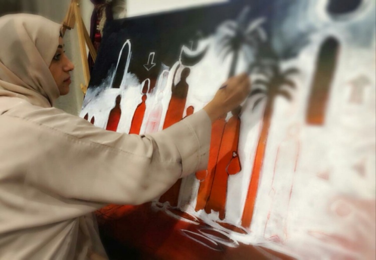 تشكيلية تشارك بلوحات فنية في ملتقى ثقافي ببيشة