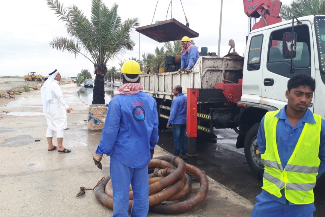 وأشار رئيس بلدية محافظة القطيف المهندس محمد الحسيني أن البلدية سخرت كافة الإمكانات والطاقات وكونت فريق عمل يعمل 24 ساعة لسحب تجمعات مياه الأمطار، وذلك في كافة بلديات المحافظة في كل من القطيف وسيهات وجزيرة تاروت وعنك وصفوى والقديح.