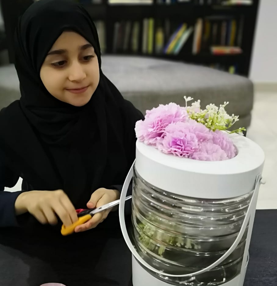 وفكرت زهراء ال سيف التي تبلغ 10 سنوات وسارة التي تصغرها بسنتين، بمشروع تجاري حتى لجأتا إلى مشاهدة برنامج ”حرف ابداعية في 5 دقائق“ على اليوتيوب وتجربة تنفيذ الأفكار إلى أن استقر رأيهما على مشروع تجهيز وإعداد الهدايا.