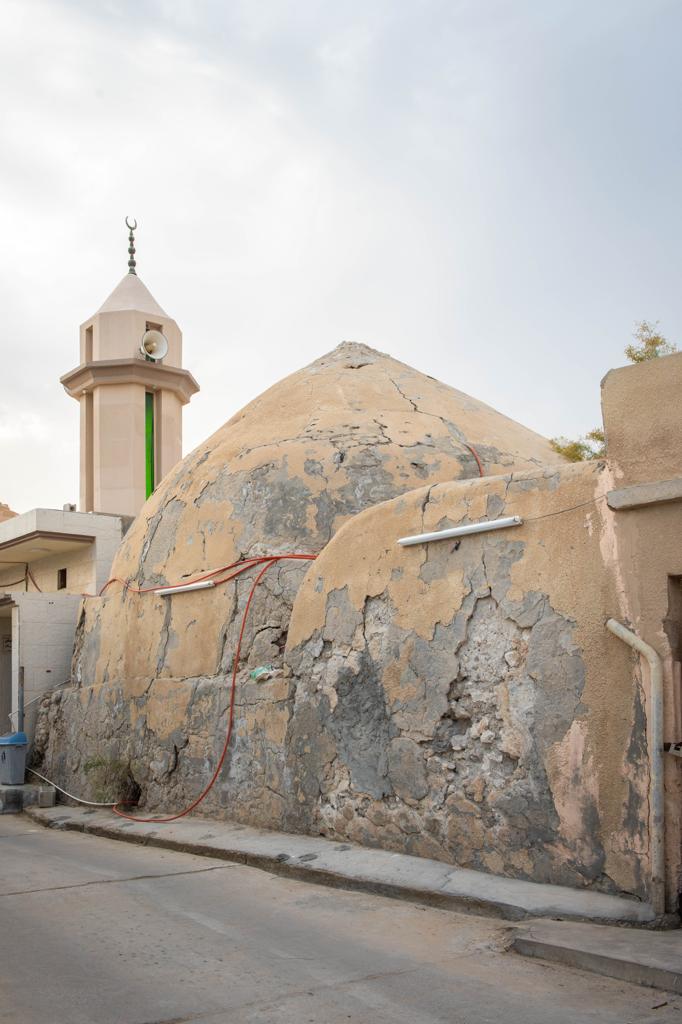وأضاف أن من جهة الغرب حيث يحده مسجد صغير بني بمحاذاة الجدار الغربي للحمام الذي لم يكن مناسباً ليواكب قدم بناء الحمام وهو لايزال يخدم الفلاحين وشريحة من الناس المجاورين له فيقصدونه للصلاة، لذا فقد جدد بناؤه بحسب المواصفات الحديثة.