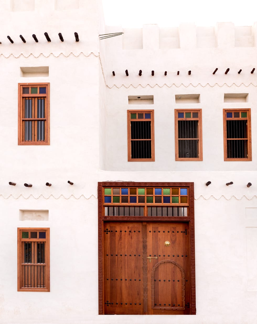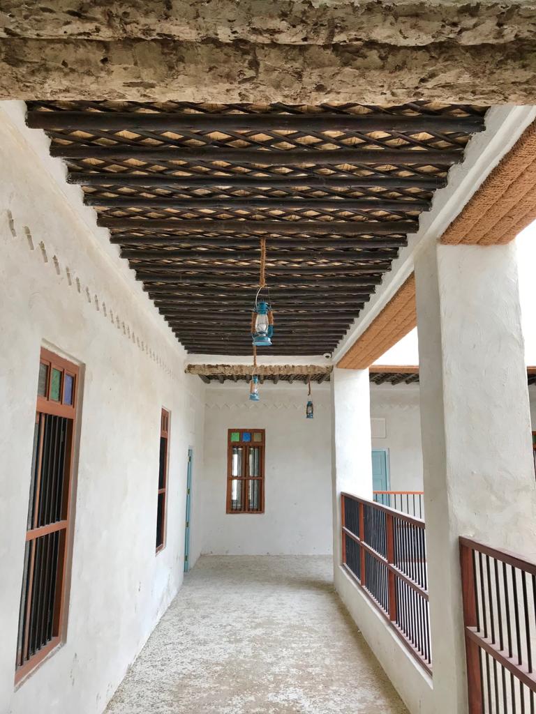 وتم زخرفة البيت بزخارف جصية في الممرات والغرف. وكانت هذه الزخارف تدل قديما على مكانة وغنى صاحب البيت. كما عمد الحرفيان إلى عمل بوابات منقوشة ونوافذ خشبية بالخشب الصلب وفتحات للإنارة تسمى ”الروشن“.