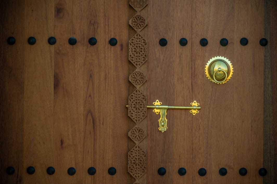 ويعود وجود اللون الأزرق الذي صبغت به أبوابه إلى كون عوائل القطيف الثرية، قبل السبعينيات، كانت تعمد إلى صبغ الأبواب والنوافذ باللون الأحمر أو الأخضر أو الأزرق. من جهتها، تُرجع بعض البحوث في تراث محافظة القطيف كثرة استخدام اللون الأزرق إلى ”اللازورد“ وهو حجر السعادة والمحبة الذي يعد من الأحجار الوفيرة والثمينة، إذ كان الأهالي يتباهون به منذ آلاف السنيين حتى في ملبسهم، كما كانت تزجج به أقنية الفخار.