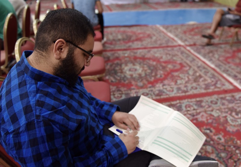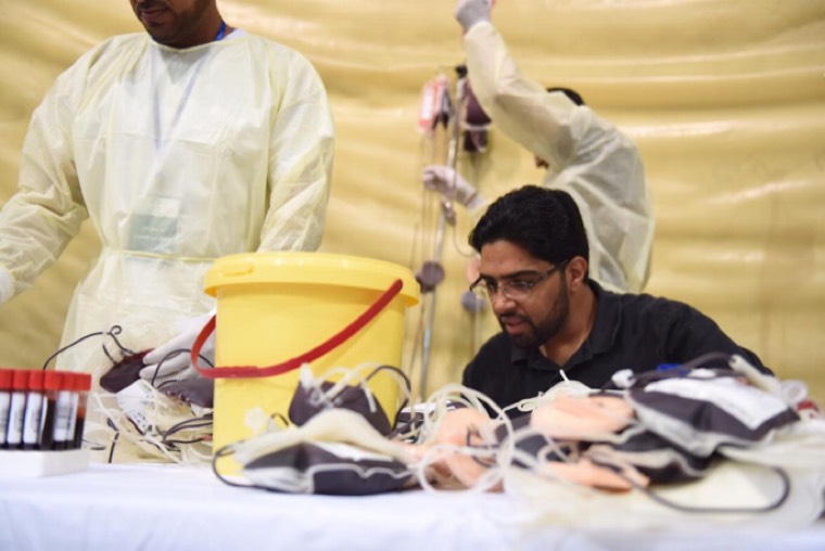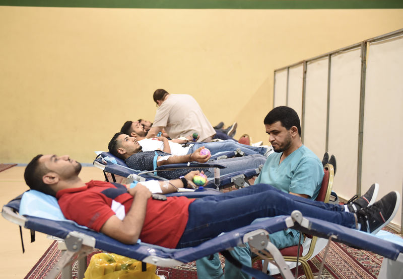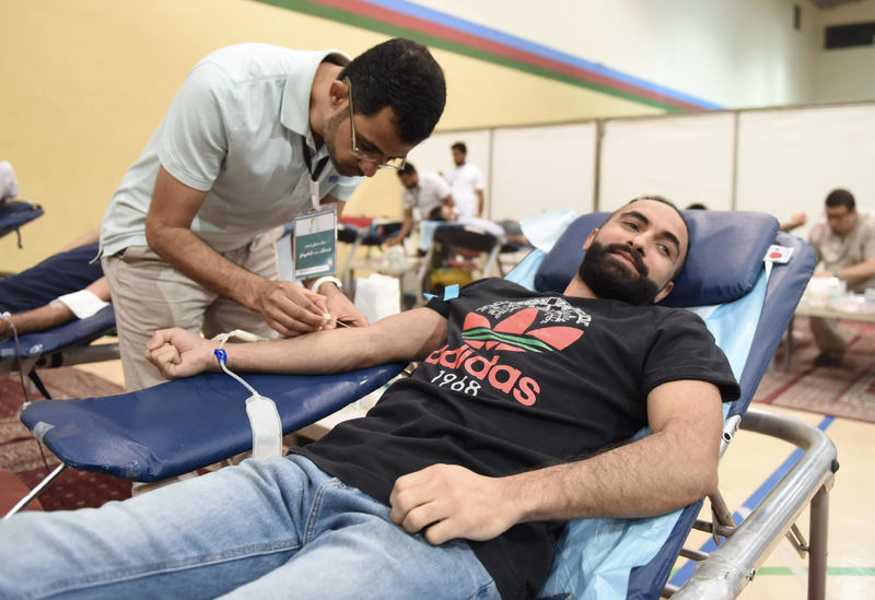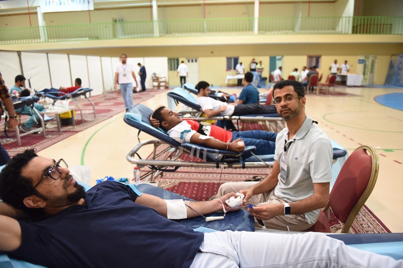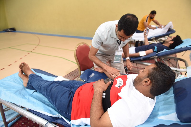 والتقط الزميل الشرقي صورا للشباب الذين توافدوا على صالة النادي ضمن الحملة التي جاءت بعنوان «انقذ نفسا فدمك دمهم».