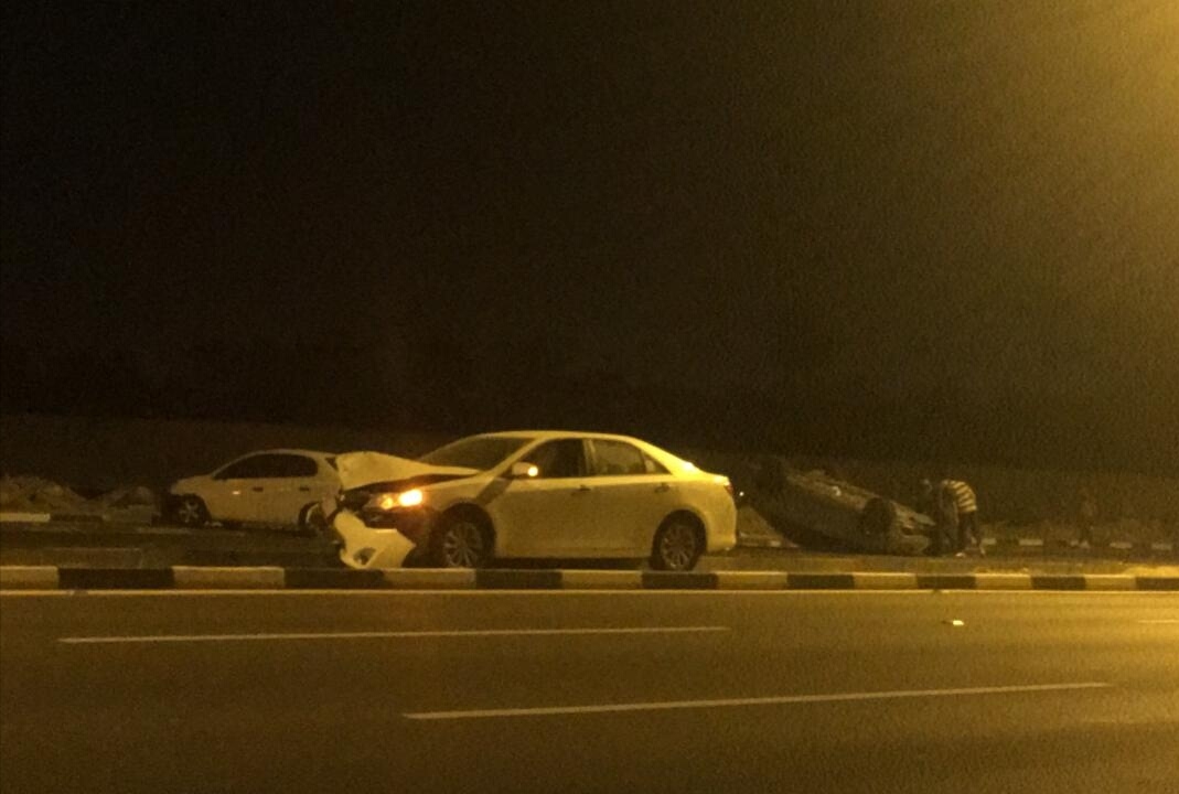 تسبب حادث مروري لأربع مركبات بعد منتصف مساء السبت في إصابة سائق مركبة إثر انقلابها رأسا على عقب على طريق أحد في محافظة القطيف.