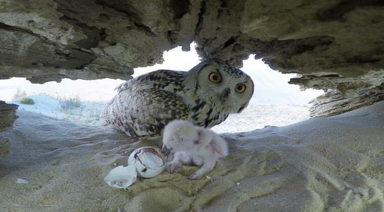 وأضاف: ”عاش طائر البوم بطريقة مختلفة وأنا أتابعه وأقترب منه أكثر، حتى أصبحت أحمل صغاره بيدي وألتقط مزيدا من الصور عن قرب، وهذا الطائر مليء بالأسرار، فقد عشت معه خمسة شهور وتغيرت نظرتي له وارتباطه بالنحس والشؤم“.