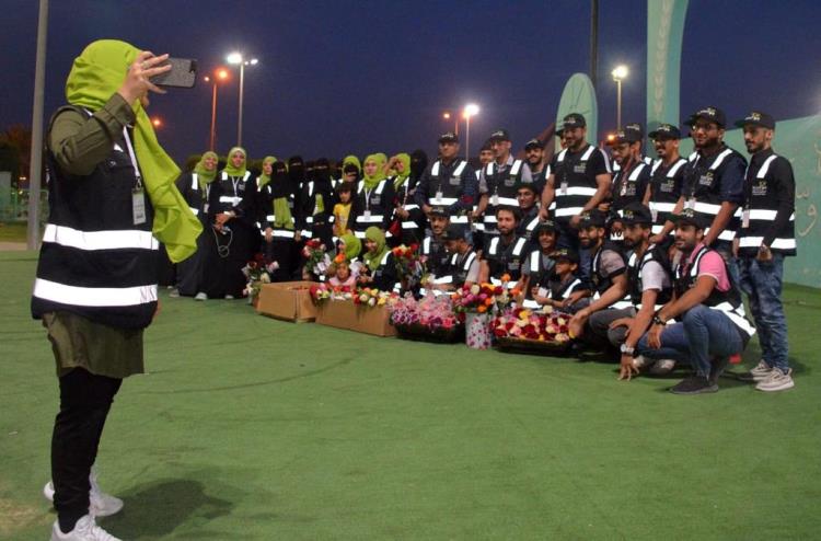 شارك 70 عضوا من فريق ”في الخدمة“ التطوعي فجر يوم الجمعة في مبادرة توزيع الورود على مرتادي كورنيش القطيف.