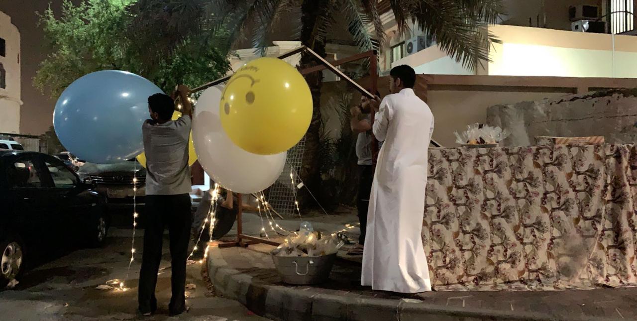 وشاركت بعض الأسر ابناءها الفرحة في أجواء عائلية حيث تشهد شوارع وأحياء القطيف وقراها أجواء الاحتفالات فتضاء السماء بالألعاب النارية وتوزع الحلويات على المارة في الشوارع .