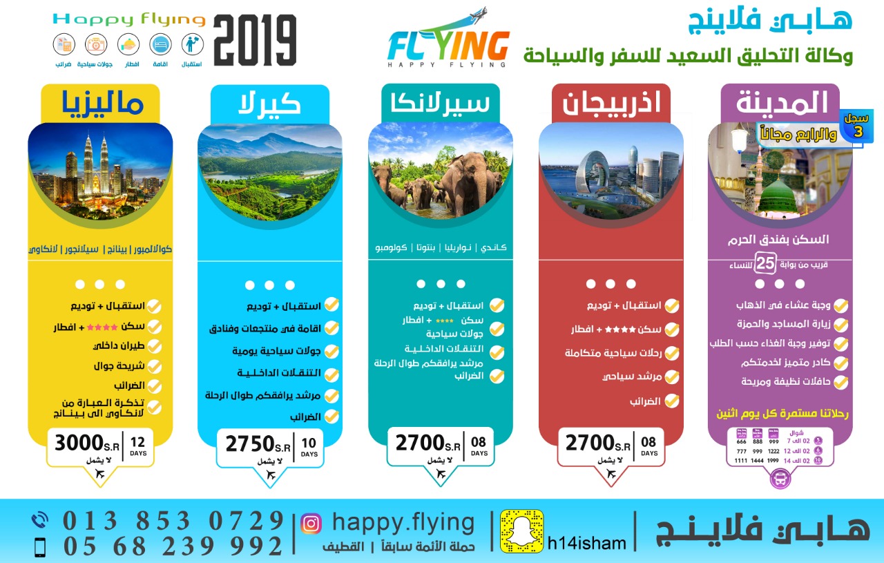 رحلات صيف 2019 مع وكالة التحليق السعيد للسياحة والسفر