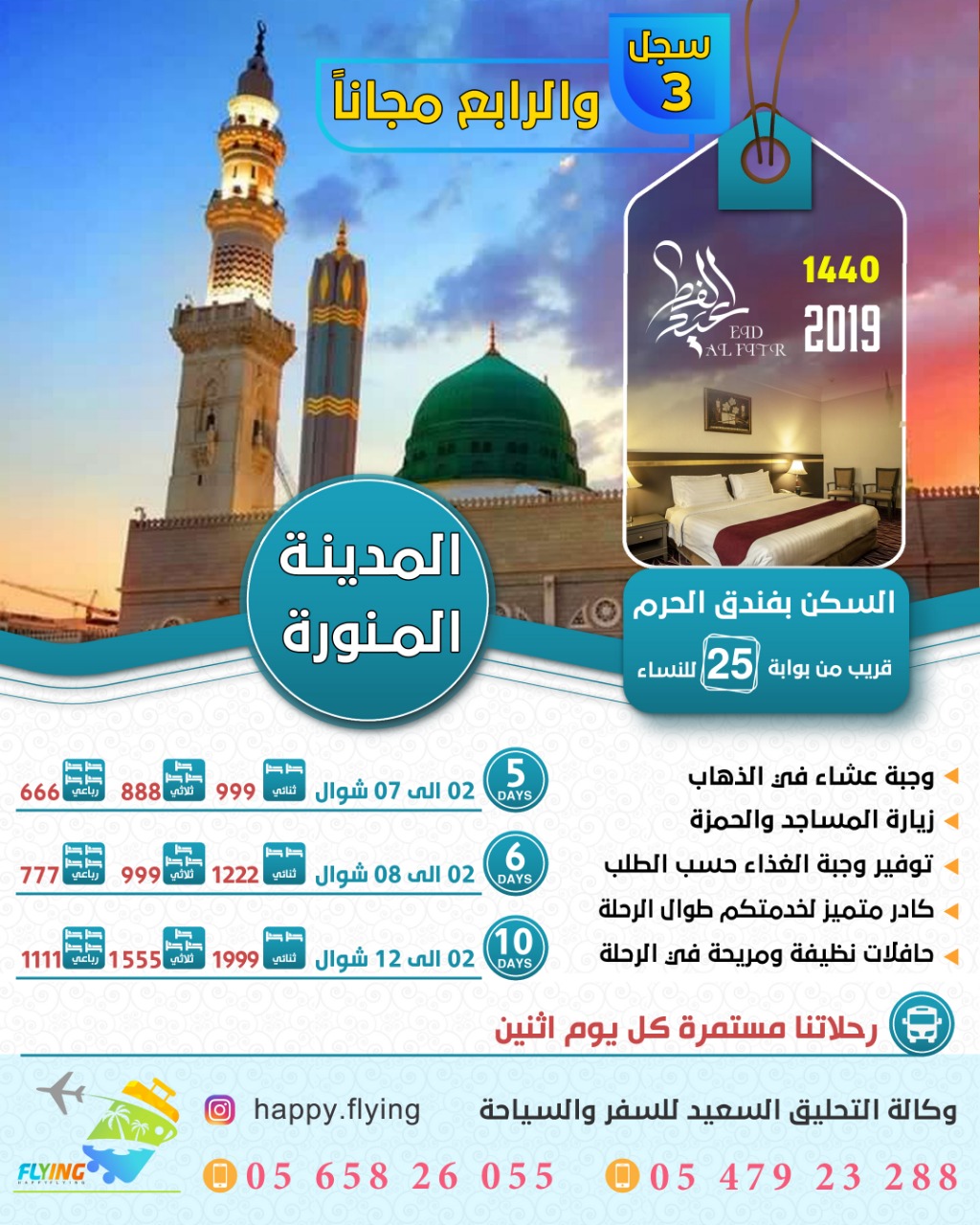 🎁🎊 أحجز لثلاثة أشخاص والرابع مجاناً في رحلات عيد الفطر وشوال إلى المدينة المنورة🎊🎊💎🎊🎊