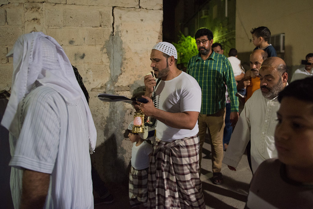 وذلك احتفالية لوداع شهر رمضان المبارك، وهم يرددون في فرح وسعادة ما يصدح به «المسحر» من أهازيج وشيلات.
