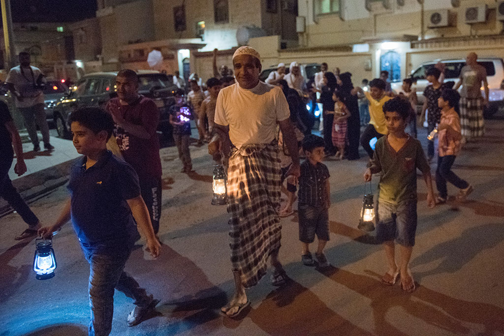وانتظم الأطفال في مسيرات طويلة مرددين أهازيج شعبية، واشترك أهالي القطيف فى وداع شهر رمضان، حيث خرج عدد من أبناء المحافظة يرافقهم عدد من المسحرين، الذين دأبوا على مدار الشهر الكريم بإيقاظ النائمين وتسحيرهم بالعديد من الأهازيج.