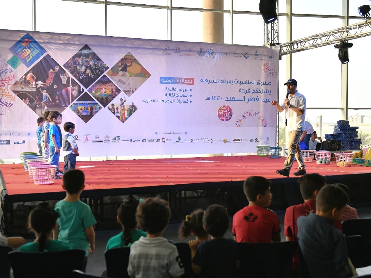 حظيت فعالية مسرح الطفل المقامة ثاني أيام العيد ضمن فعاليات حفل الأهالي بالمنطقة الشرقية بمناسبة عيد الفطر السعيد التي ينظمها صندوق المناسبات بغرفة الشرقية استحسان الحاضرين من اهالي وزوار المنطقة.